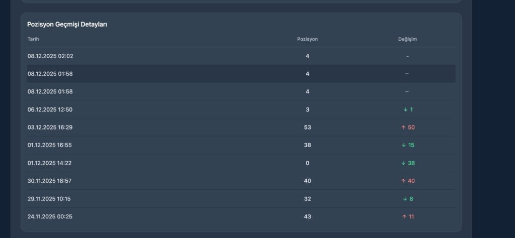 Bu sadece bir giriş değildi; sıralamamız hızla stabil ve otoriter bir hale geldi. Şu anda ilk sayfanın üst sıralarına doğru kararlı yolculuğumuz sürüyor. Onur Özden Web Çözümleri olarak rekabetçi sektörlerde dahi pürüzsüz ve hızlı geçişler sağlıyoruz.