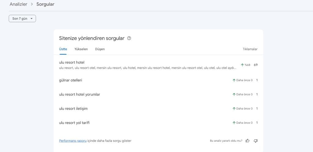 - Hizmet Aramaları: “Spa”, “Konaklama”, “Restaurant” gibi kelimelerde artan görünürlük.