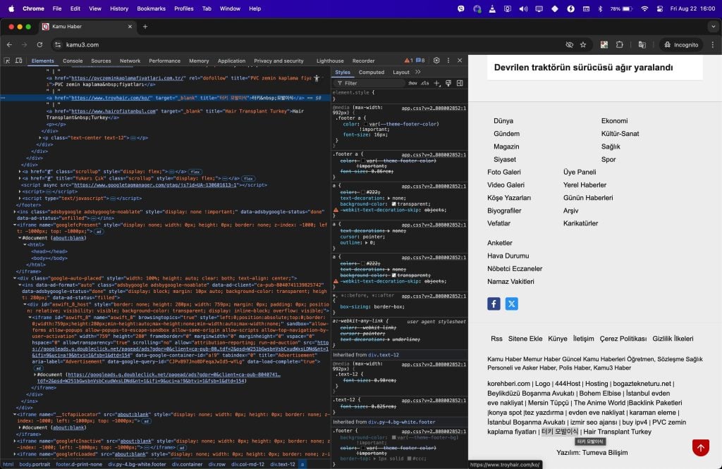 Kaliteli haber sitelerinden footer linkler ve reklam yazıları ile görünürlük artırıldı