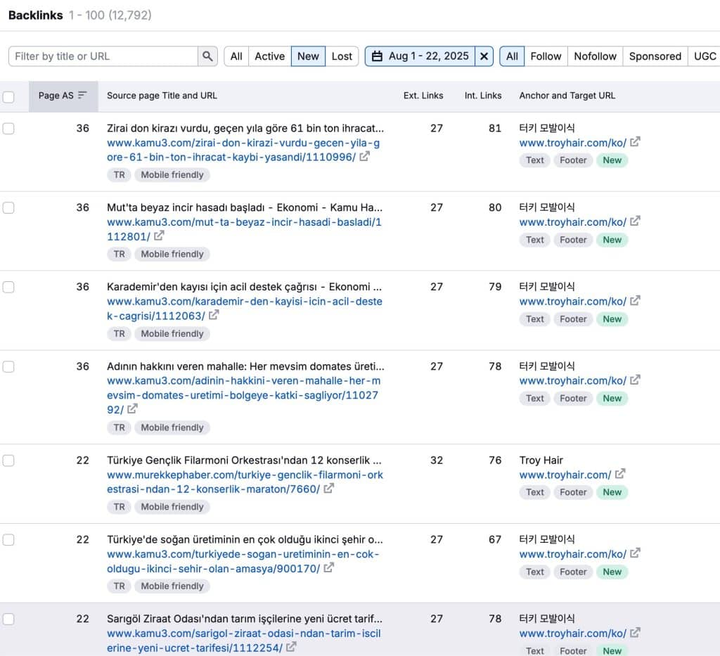 Sürekli artan haber linkleri: Kaliteli haber sitelerinden elde edilen backlinkler, Troy Hair’in görünürlüğünü sürekli büyüten keşfedilen bağlantı havuzunu her geçen gün genişletiyor